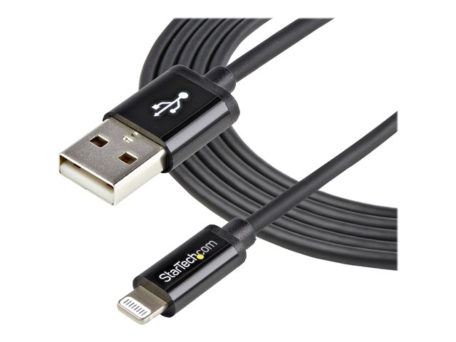 StarTech.com 2 m USB till Lightning-kabel - Lång iPhone/iPad/iPod-laddningskabel - Lightning till USB-kabel - Apple MFi-certifierad - Svart - Lightning-kabel - Lightning hane till USB hane - 2 m - dubbelt skärmad - svart - för P/N: ST4200MINI2, ST4200MINIC