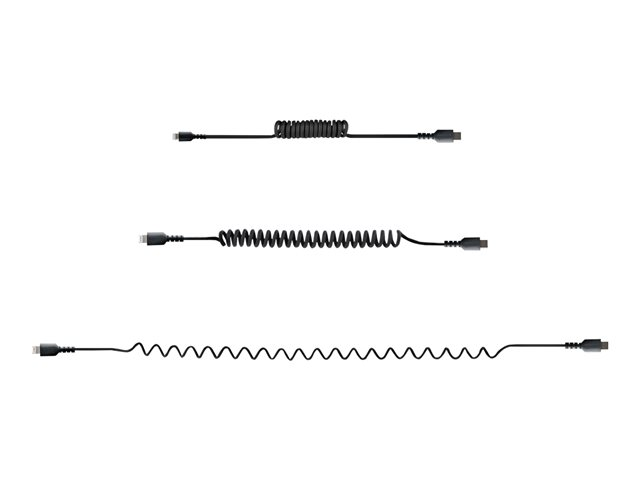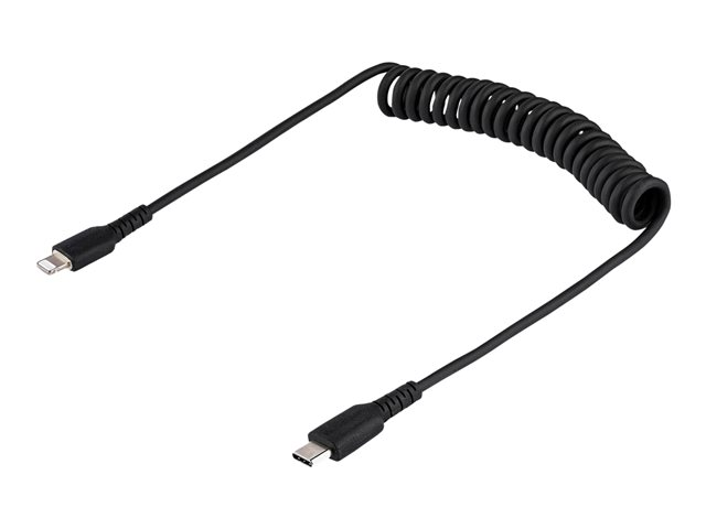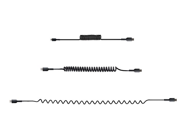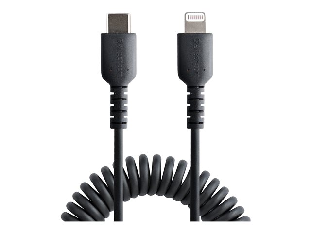 StarTech.com USB C till Lightning-kabel 50 cm, MFi-certifierad, iPhone-spiralladdarkabel, svart, TPE-mantel med slitstark aramidfiber, kraftig Lightning-spiralkabel - Lightning-kabel - USB-C hane till Lightning hane - 50 cm - svart - lindad
