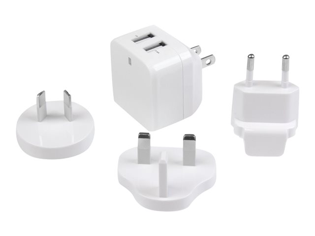 StarTech.com USB-väggladdare med två portar - internationell resa - 17 W/3,4 A - vit - Strömadapter - 17 Watt - 3.4 A - 2 utdatakontakter (USB) - vit - för P/N: USBLT1MWS, USBLT2MBR, USBLT2MW, USBLT30CMW, USBLTM1MBK, USBLTM1MWH, VID2VGATV3