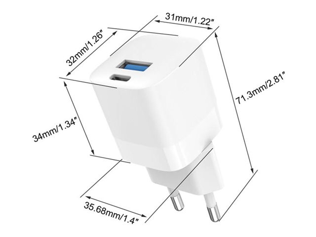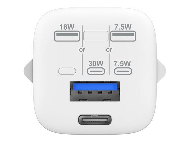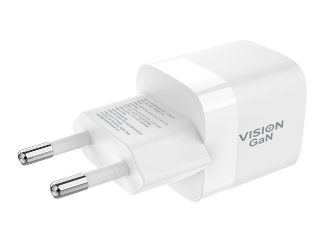 Vision - Strömadapter - 30 Watt - 3 A - QC 3.0 - 2 utdatakontakter (USB-C, USB) - vit - Europa