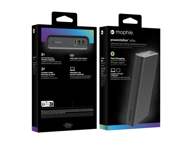 mophie powerstation ultra - Strömförsörjningsbank - 25000 mAh - 140 Watt - PD - 3 utdatakontakter (24 pin USB-C) - svart