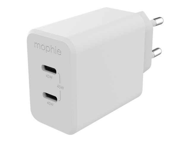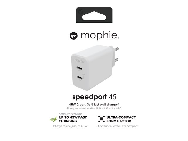 mophie speedport 45 - Strömadapter - 45 Watt - Fast Charge, PD - 2 utdatakontakter (24 pin USB-C) - vit - Europa 409909299