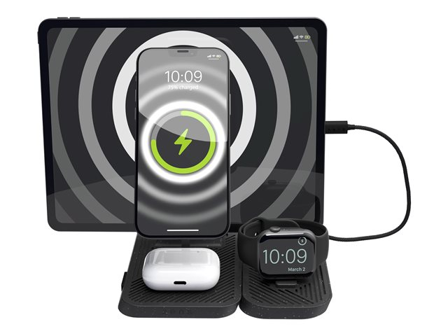 ZENS 4-in-1 - Trådlöst laddställ - Modulär, med iPad-laddningsställ + växelströmsadapter - 30 Watt - på kabel: USB-C - svart - för Apple AirPods with MagSafe Charging Case; AirPods Pro; iPhone 12, 13, 14