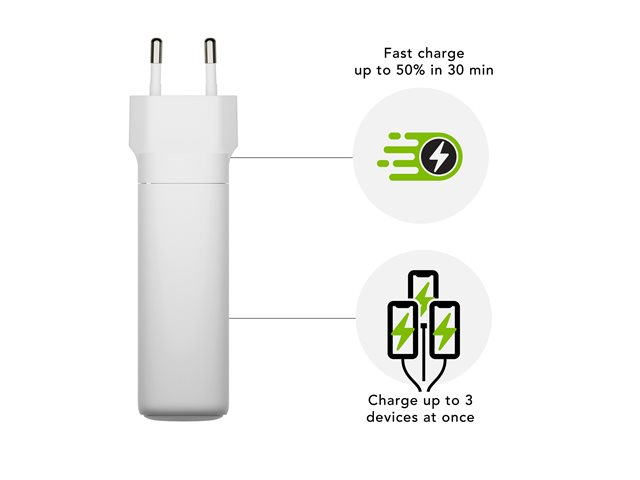 Till skillnad från de flesta laddare är dbramante1928 laddare tillverkade av 100% återvunnen plast och är 100% återvinningsbara. Denna kompakta USB-C 140W+100W+USB-A18W-W väggladdare med två USB-C-kontakter och en USB-A-kontakt erbjuder en säker och snabb laddning för smartphones, surfplattor och vissa bärbara datorer. Denna laddare är utformad för att vara resevänlig och passar enkelt in i alla miljöer hemma eller när du är ute och reser.