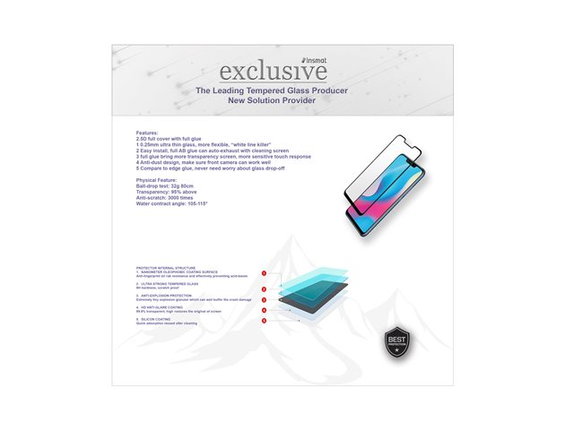 Insmat Exclusive - Skärmskydd för mobiltelefon - helskärm - 2.5D - glas - ramfärg svart - för Honor 400 Lite