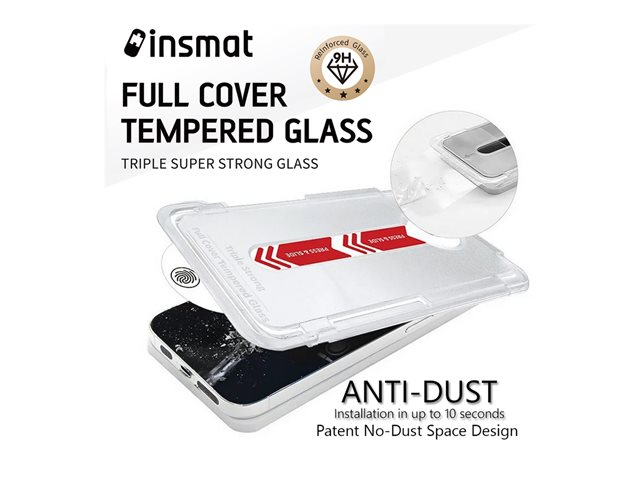 Insmat - Skärmskydd för mobiltelefon - lätt och anti-damm, super full täckning - glas - ramfärg svart - för Apple iPhone 15, 16