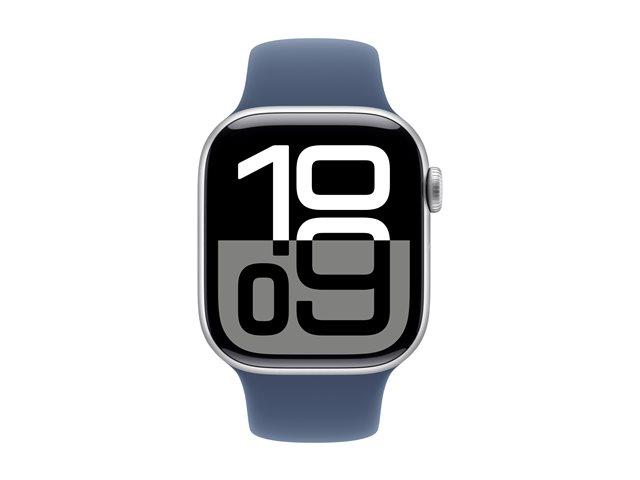 Apple Watch Series 10 (GPS) - 42 mm - silveraluminium - smart klocka med sportband - fluoroelastomer - denim - bandstorlek: M/L - 64 GB - Wi-Fi 4, UWB, Bluetooth - 30 g MWWC3QN/A