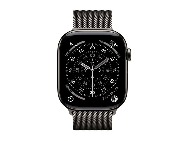 Apple Watch Series 11 (GPS + Cellular) - 46 mm - skiffer titan - smart klocka med milanesisk loop - nät av rostfritt stål - skiffer - bandstorlek: M/L - 64 GB - LTE, Wi-Fi 4, UWB, Bluetooth - 5G - 43.1 g MFD44QN/A