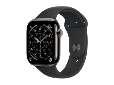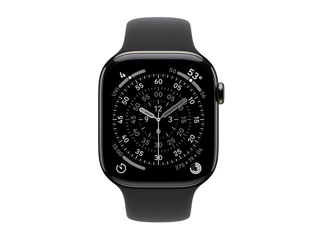 Apple Watch Series 11 (GPS + Cellular) - 46 mm - skiffer titan - smart klocka med sportband - fluoroelastomer - svart - bandstorlek: M/L - 64 GB - LTE, Wi-Fi 4, UWB, Bluetooth - 5G - 43.1 g MFD24QN/A