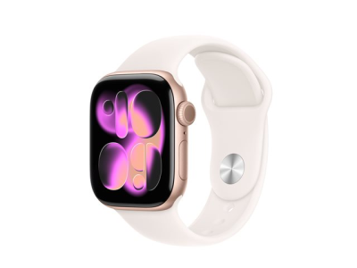 Apple Watch Series 11 (GPS) - 42 mm - guldrosa aluminium - smart klocka med sportband - fluoroelastomer - lätt rouge - bandstorlek: M/L - 64 GB - Wi-Fi 4, UWB, Bluetooth - 30.3 g MEU44QN/A