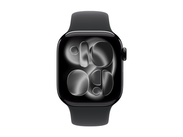 Apple Watch Series 11 (GPS) - 42 mm - jet black aluminium - smart klocka med sportband - fluoroelastomer - svart - bandstorlek: M/L - 64 GB - Wi-Fi 4, UWB, Bluetooth - 30.3 g MEQU4QN/A