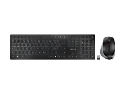 CHERRY DW 9500 SLIM - Sats med tangentbord och mus - trådlös - 2.4 GHz, Bluetooth 4.0 - hela norden - tangentbrytare: CHERRY SX - grå, svart - plastfri förpackning