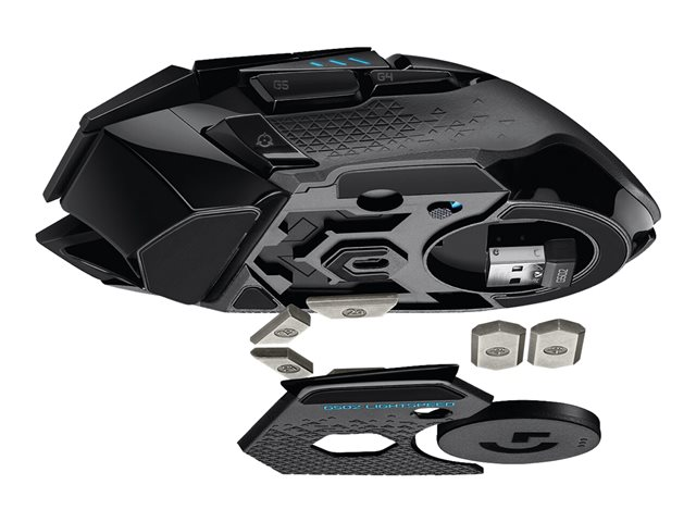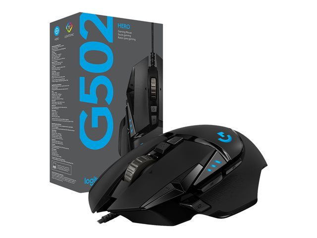 Logitech Gaming Mouse G502 (Hero) - Mus - optisk - 11 knappar - trådlös, kabelansluten - 2.4 GHz - trådlös USB-mottagare 910-005568