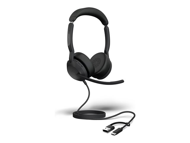 Jabra Evolve2 50 MS Stereo - Headset - på örat - trådlös, kabelansluten - aktiv brusradering - USB-C, USB-A - Certifierad för Microsoft-teams