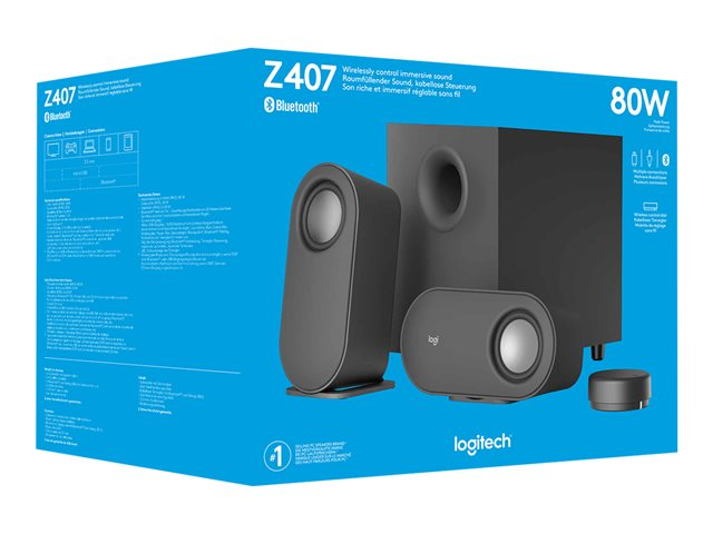 Logitech Z407 - Android Edition - högtalarsystem - för persondator - 2.1-kanals - trådlös - Bluetooth - USB - 40 Watt (Total) - grafitgrå