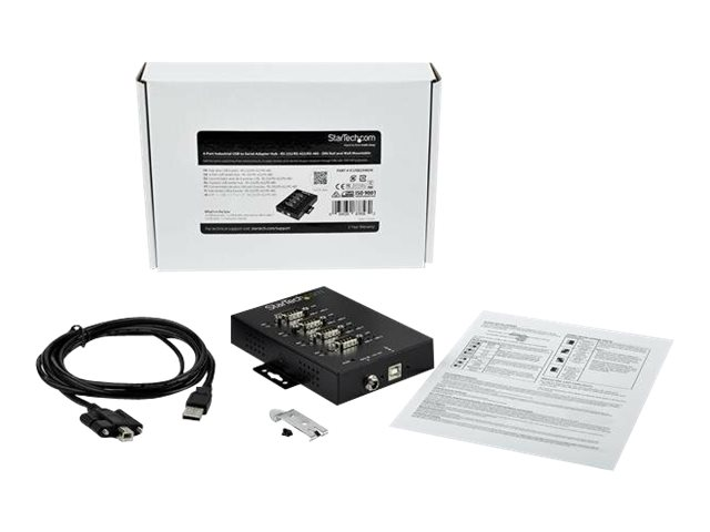 StarTech.com Industriell USB till RS-232/422/485 seriell adapter med 4 portar - ESD-skydd på 15 kV - Seriell adapter - USB 2.0 - RS-232/422/485 x 4 + USB 2.0 x 1 - svart - TAA-kompatibel