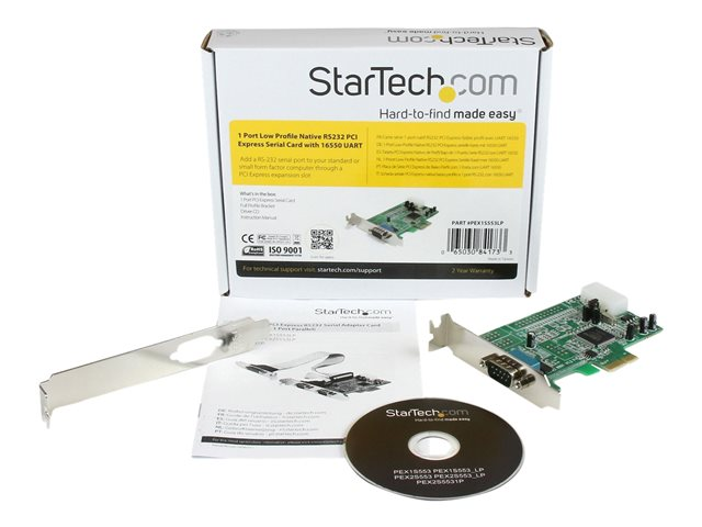 StarTech.com PCI Express RS232 seriell kortadapter med 1 port - PCIe RS232 seriellt värdkontrollerkort - PCIe till seriell DB9 - 16550 UART - Expansionskort i lågprofil - Windows och Linux - Seriell adapter - PCIe låg profil - RS-232