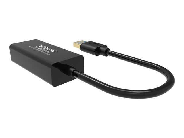 Converts a USB port on a laptop into an RJ45 ethernet port.