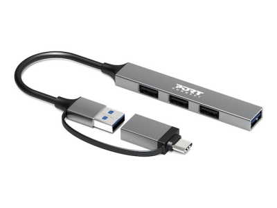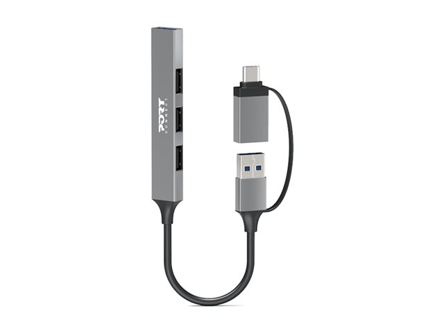 PORT Connect - Hubb - USB-C/USB-A, slimmad - 3 x USB 2.0 + 1 x SuperSpeed USB - skrivbordsmodell