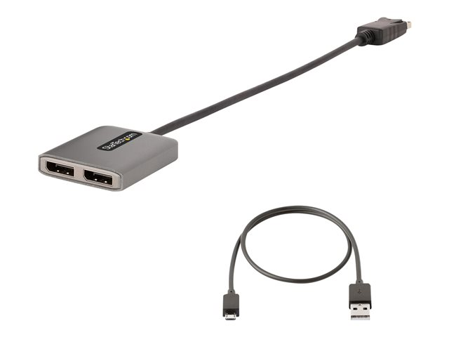 StarTech.com 2-Port DisplayPort MST Hub, Dual 4K 60Hz, DP to 2x DisplayPort Monitor Adapter, DP 1.4 Multi-Monitor Video Adapter w/ 1ft Built-in Cable, USB Powered, Windows Only - Multi Stream Transport Hub (MST14DP122DP) - Hubb - 1 x DisplayPort + 1 x micro-USB + 2 x DisplayPort