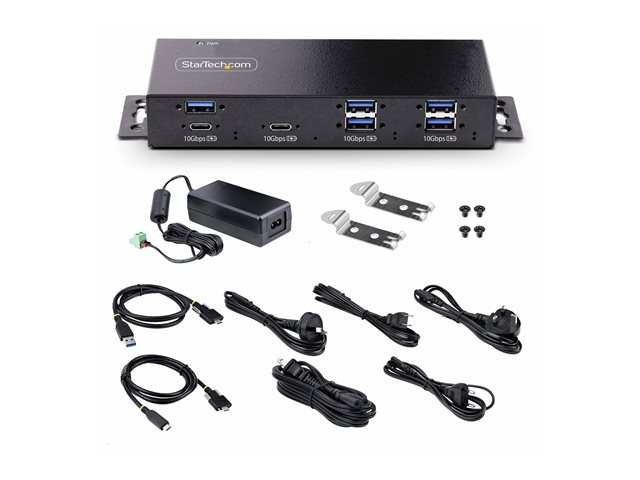 StarTech.com 7-Port Industrial USB Hub 10Gbps Hub, Metal, Mountable, TAA - Hubb - industriell - 7 x USB 3.2 Gen 2 - skrivbordsmodell, DIN-skenmonterbar, rackmonterbar - TAA-kompatibel