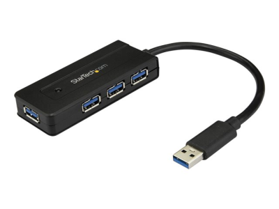 StarTech.com USB 3.0-hubb med 4 portar - Minihubb med laddningsport - Strömadapter medföljer - Hubb - 4 x SuperSpeed USB 3.0 - skrivbordsmodell - för P/N: USB312SAT3CB, USB315CB2M, USBLT1MWS, USBLT2MBR, USBLT30CMW, USBLTM1MBK, USBLTM1MWH