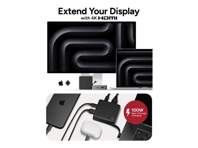 ZAGG - Hubb - 1 x USB-C (Power Delivery 3.0) + 1 x USB-C (strömgenomströmning) + 1 x USB-A 3.0 + 1 x HDMI - skrivbordsmodell