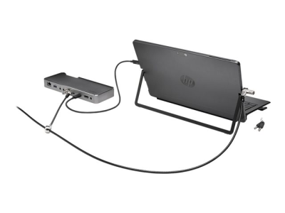 • Låser fast en bärbar dator och en kringutrustning i ett fast föremål för att förhindra stöld när du vänder ryggen till