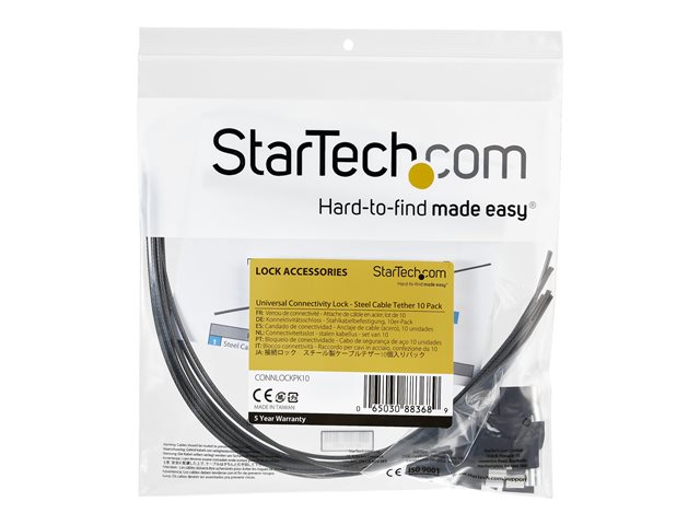 StarTech.com Säkerhetslåskablar - paket med 10 - stål - justerbar - Säkerhetskabel - silver - 30 cm - TAA-kompatibel (paket om 10) CONNLOCKPK10