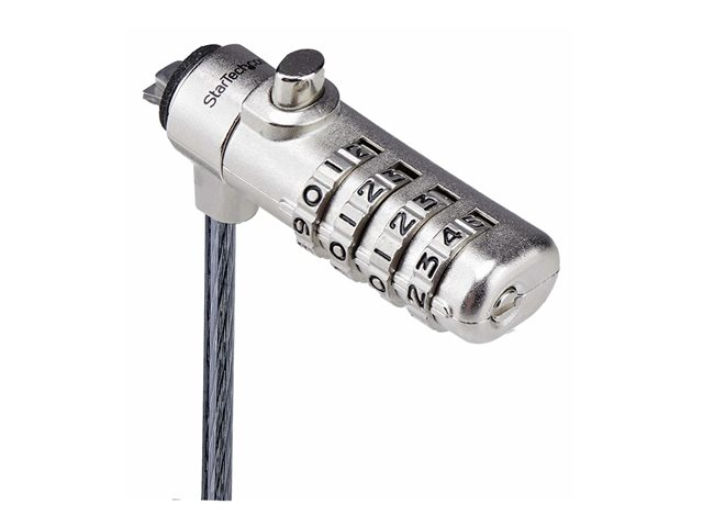 Slim Lock Noble Wedge Slot Compatible, 6,6 ft låskabel från StarTech.com ger effektiv säkerhet för din bärbara dator. Det här säkerhetskabellåset är tillverkat av stål och garanterar hållbarhet, vilket gör det till ett pålitligt val för att skydda din enhet. Med stöldskydd och skärbeständig design hjälper det till att förhindra stöld samtidigt som det är enkelt att använda med en kombinationslåsmetod. Dess 360° rotation ger flexibilitet i positionering, vilket gör det bekvämt att säkra din enhet i olika miljöer.