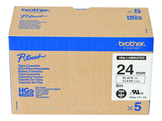 Brother HGE-151V5 - Svart på klar - Rulle ( 2,4 cm x 8 m) 5 kassett(er) bandlaminat - för P-Touch PT-9500pc, PT-9800PCN