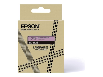 Epson LabelWorks LK-4PAS - Mjukrosa/grå - Rulle (1,2 cm) 1 kassett(er) tejp - för LabelWorks LW-C410, LW-C610
