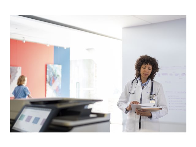Dokument- och mediehantering, specifikationer | ADM - 150 ark storlek: 68 x 148 mm - Legal (216 x 356 mm) 4 x inmatningsfack - 500 ark - Legal (216 x 356 mm) vikt: 60 g/m² - 220 g/m² Snabbmagasin - 100 ark Utmatningsfack - 500 ark Sortering/häftning - 500 ark Inmatningsfack - 2200 ark |