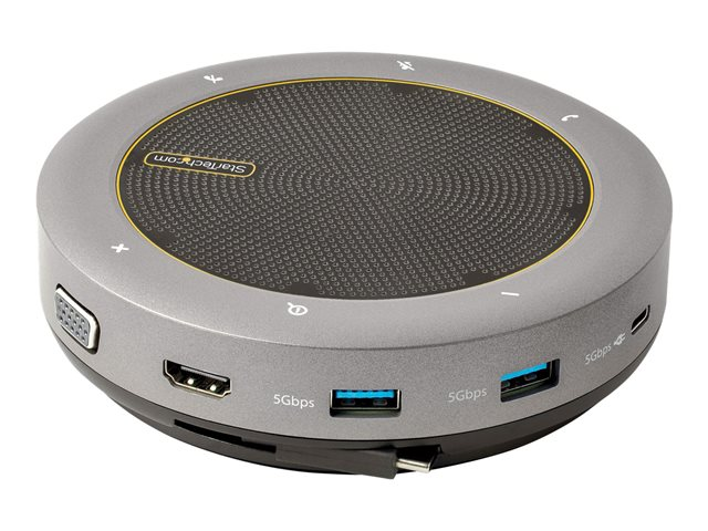 StarTech.com USB-C Conference Speaker Mini Dock, Portable Boardroom Speaker and Multiport Adapter, USB-C to VGA or 4K 60Hz HDMI, 2x USB-A (5Gbps) Hub, Mic/Speaker - Teams/Zoom/Softphone Speakerphone (DKTBRSPMPD) - Mini-dockningsenhet - USB-C / Thunderbolt 3 / Thunderbolt 4 - HDMI, VGA DKTBRSPMPD