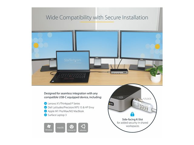 StarTech.com USB-C Triple Monitor Docking Station - HDMI/DP Triple 4k USB-C Dock - 5x USB Hub - GbE - 100W PD - Universal Multi Monitor Docking Station - Thunderbolt 3/4 Compatible (116E-USBC-DOCK) - dockningsstation - USB-C - 1GbE