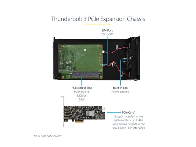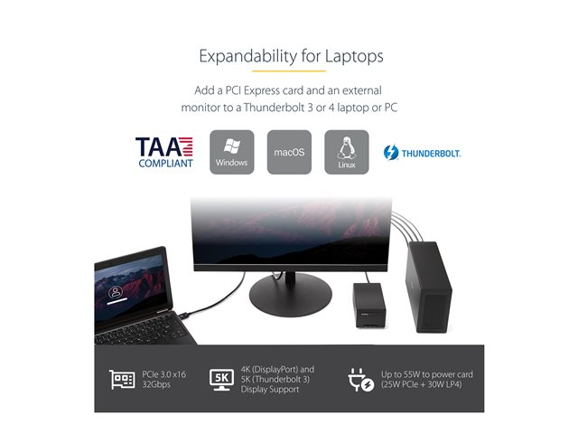StarTech.com Thunderbolt 3 PCIe Expansion Chassis, External Enclosure Box with 1x PCI-Express Slot, 5K/4K Output Via TB3/DP Ports, TAA - Förlängningskabel till systembuss - DP - 65 Watt - för P/N: TB3DK2DPM2, TB3DOCK2DPPD, TB3DOCK2DPPU