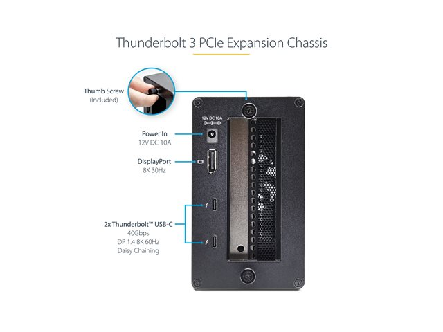 StarTech.com Thunderbolt 3 PCIe Expansion Chassis, Enclosure Box W/Dual PCI-E Slots, External PCIe Slots for Laptops/Desktops/All-In-Ones, 8K/4K Output Via TB3/DP 1.4 Ports - For PCI Express Cards (2TBT3-PCIE-ENCLOSURE) - Förlängningskabel till systembuss - DP - 120 Watt - TAA-kompatibel