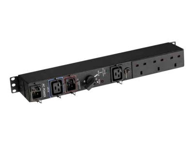 | Allmänt |  | Typ av enhet | Förbikopplare - kan monteras i rack |  | Stativstorlek | 19" |  | Nätdel |  | Inspänning | AC 220-240 V |  | Inmatningsanslutningar | 1 x ström IEC 60320 C20 16A |  | Kontaktdetaljer för uteffekt | 3 x ström, BS 1 x IEC-kontakt