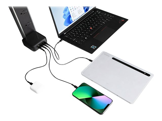 Targus - Strömadapter - GaN - 100 Watt - PD - 4 utdatakontakter (2 x USB-C, 2 x 9-stifts USB typ A) - svart