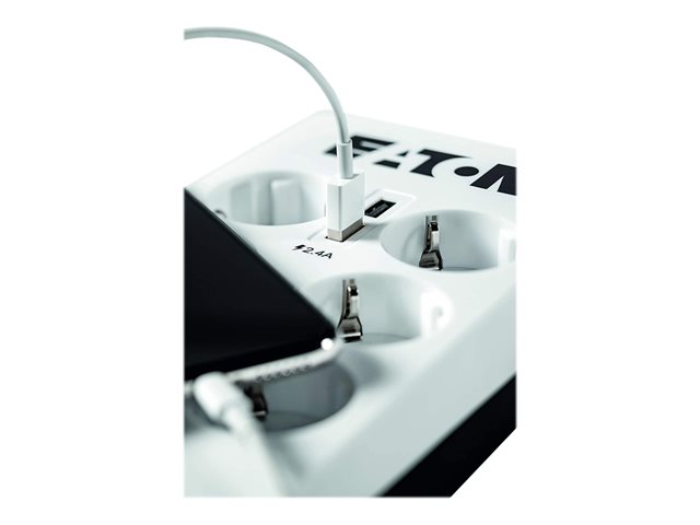 Eaton Protection Box 6 USB Tel@ Din - Överspänningsskydd - Växelström 220-250 V - 2500 Watt - utgångskontakter: 6 - vit