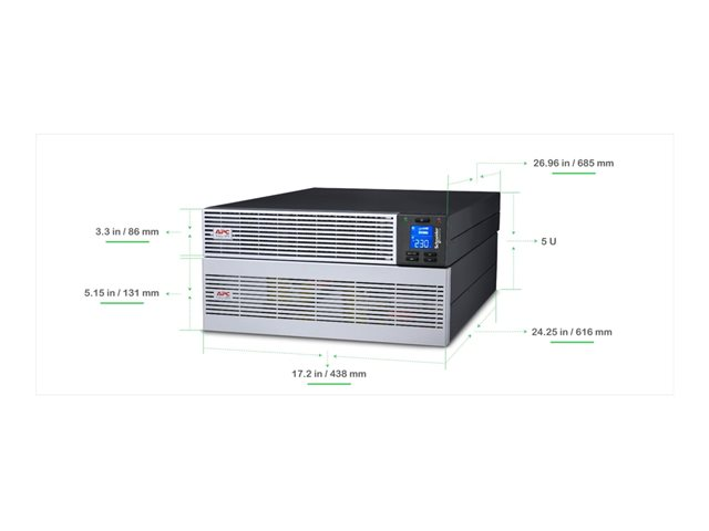 APC Easy UPS On-Line - UPS (rackmonterbar/extern) - utökat driftid, hårdvarukontakt (1P+N+E), intelligent kortplats, med skenmonteringskit - AC 230 V - 6 kW - 6000 VA - litiumjon - RS-232, USB, RJ-11, RJ-45 - 5U - svart, silver (framskydd) - för P/N: AP9544, SRVSMB001, VGL9901I
