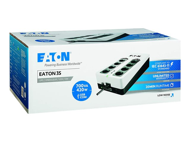 Eaton 3S 700 - UPS - AC 220-240 V - 420 Watt - 700 VA - 1-fas - USB - utgångskontakter: 8