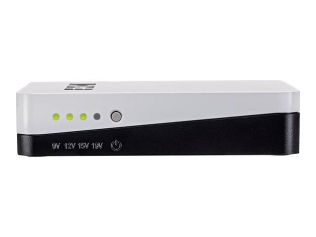 | Allmänt |  | Typ av enhet | UPS - extern |  | Färg | Svart, vit |  | Nätdel |  | UPS-teknik | Online |  | Inmatningsanslutningar | 1 x ström, BS |  | Kontaktdetaljer för uteffekt | 1 x power DC jack |  | Utspänning | DC 9 / 12 / 15 / 19 V |  | Effektkapacitet | 36 Watt |  | Batteri |  | Antal | 2 |  | Teknik | Litiumjon |  | Kapacitet | 2.2 Ah |  | Diverse |  | Inkluderade tillbehör | 4 kontaktstift |  | Medföljande kablar | Strömkabel - extern - 1 m |  | Egenskaper | LED-indikatorer |  | Standarder som följs | IEC 62040-2, EN 62040-2, IEC 62477-1, IEC 62040-5-3 |  | Mått och vikt |  | Bredd | 9.5 cm |  | Djup | 13.6 cm |  | Höjd | 3 cm |  | Vikt | 370 g |  |