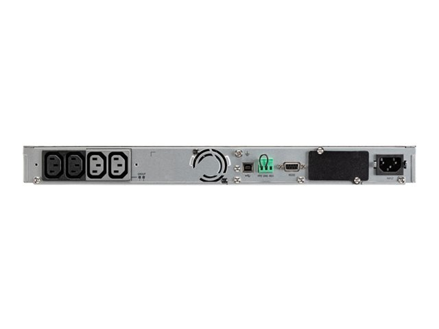 | Allmänt |  | Typ av enhet | UPS - kan monteras i rack |  | Höjd (U-format) | 1U |  | Stativstorlek | 19" |  | Färg | Svart/silver |  | Nätdel |  | UPS-teknik | Interaktiv |  | Inspänning | AC 200/208/220/230/240 V |  | Inspänningens område | AC 160 - 294 V |  | Inspänningens område (justeringsbart) | AC 150 - 294 V |  | Tillhandahållen frekvens | 50/60 Hz |  | Ingångskablage | 1-fas |  | Erforderlig frekvens | 47 - 70 Hz |  | Inmatningsanslutningar | 1 x ström IEC 60320 C14 |  | Kontaktdetaljer för uteffekt | 4 x power IEC 60320 C13 |  | Utspänning | AC 200/208/220/230/240 V + 6% / - 10% - 50/60 Hz |  | Effektkapacitet | 680 Watt / 850 VA |  | Utvågform | Sinusvåg |  | Effektivitet | 98% |  | PF (Power Factor) | 0.8 |  | Batteri |  | Antal | 4 |  | Teknik | Ventilstyrd blysyra (VRLA) Bly-syra |  | Tillförd spänning | 6 V |  | Kapacitet | 7 Ah |  | Transfertid | 13 ms |  | Egenskaper | Underhållsfri, förseglad |  | Nätverk |  | Gränssnitt för fjärradministration | RS-232, USB |  | Expansion/Anslutning |  | Gränssnitt | 1 x fjärrströmkontroll (av/på) - miniterminalspärr 1 x hantering (USB) - 4-stifts USB typ B