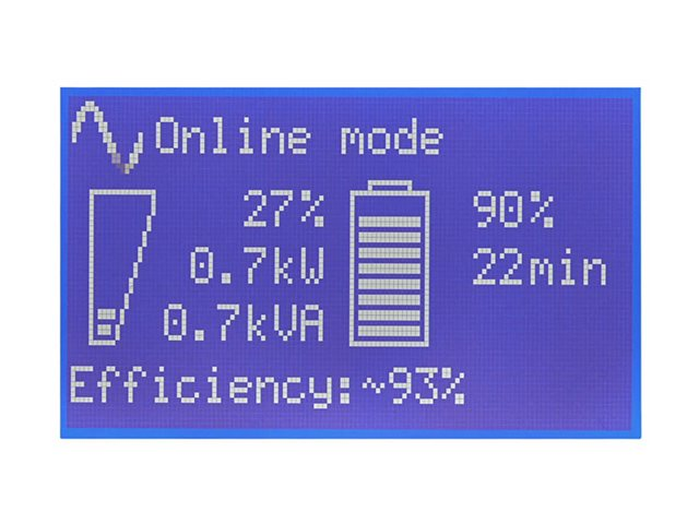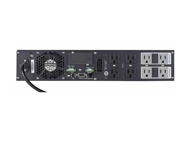 | Allmänt |  | Typ av enhet | UPS - rackmonterbar/extern |  | Höjd (U-format) | 2U |  | Färg | Svart, silver |  | Nätdel |  | UPS-teknik | Online |  | Inspänning | AC 100/110/120/125 V |  | Inspänningens område | Växelström 100 - 144/60 - 144 V |  | Erforderlig frekvens | 50/60 Hz |  | Inmatningsanslutningar | 1 x ström, NEMA 5-15 |  | Kontaktdetaljer för uteffekt | 8 x ström, NEMA 5-15 |  | Utspänning | AC 100/110/120/125 V ± 1% |  | Effektkapacitet | 1350 Watt / 1500 VA |  | Effektivitet | 90% |  | PF (Power Factor) | 0.99 |  | THD (Total Harmonic Distortion) | 3 % |  | Batteri |  | Typ | Kan byggas ut |  | Teknik | Bly-syra |  | Egenskaper | Underhållsfri, förseglad |  | Nätverk |  | Gränssnitt för fjärradministration | RS-232, USB |  | Expansion/Anslutning |  | Gränssnitt | 1 x hantering (RS-232) - RJ-45 1 x USB