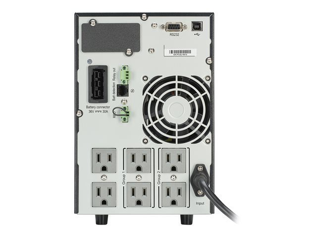 | Egenskaper | Advance Battery Management (ABM), hotswap-batterier, LCD-bildskärm, dubbel konvertering, 3-stegsladdning |