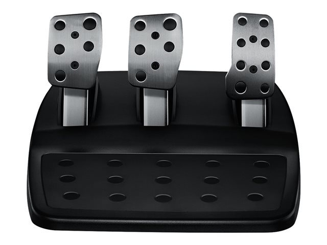 Få en mer realistisk förarställning med hjälp av en separat fotpedal med inbyggda gas-, broms- och kopplingspedaler. Med G920 Driving Force använder du gas-, broms- och kopplingspedalerna på samma sätt som i en riktig bil. Den icke-linjära bromspedalen återspeglar känslan av en tryckkänslig pedal för en bättre känsla vid inbromsning. Finjustera din körning genom att omplacera pedalerna så att du kan utföra manövrar från häl till tå. Pedalerna hålls på plats med hjälp av gummifötter för hårda ytor och infällbara mattor (patenterat system).