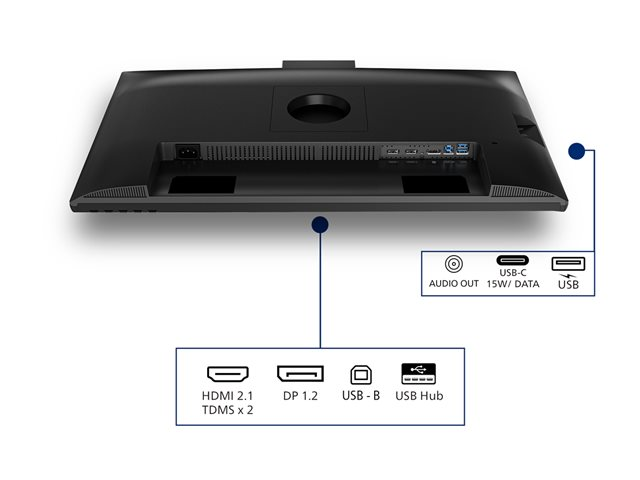 | Gränssnitt | 2 x HDMI DisplayPort 1.2 USB-upstream (Typ B) Linjeutgång för ljud (minijack) USB-upstream (Typ B) 3 x USB USB-C (ström upp till 15 W) |