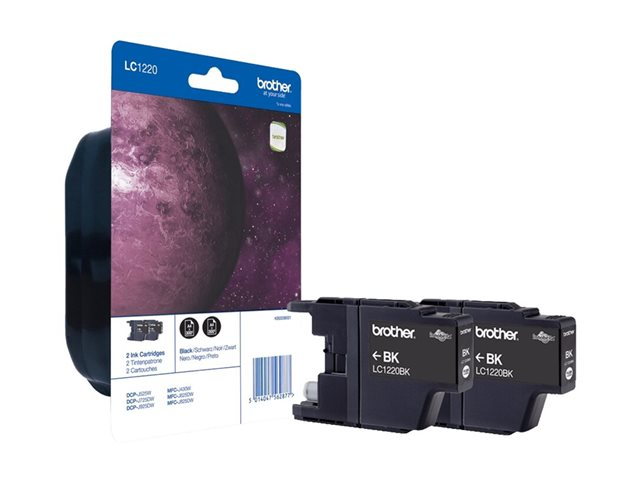 Brother LC1220BKBP2 - 2-pack - svart - original - blister - bläckpatron - för Brother DCP-J525W, DCP-J725DW, DCP-J925DW, MFC-J825DW; MyMio MFC-J825N