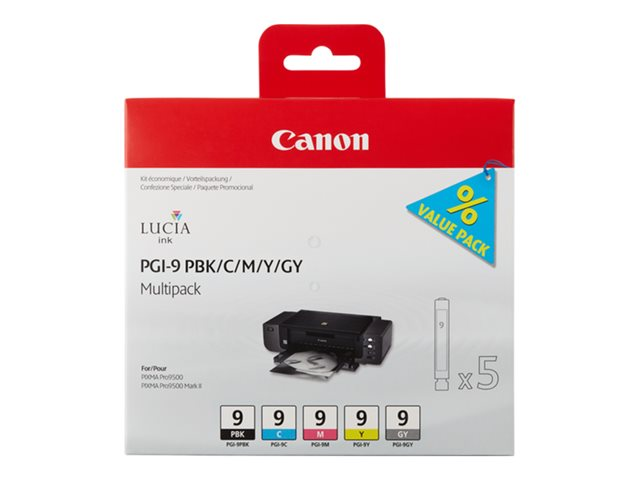 Canon PGI-9 PBK/C/M/Y/GY Multi-Pack - 5-pack - grå, gul, cyan, magenta, foto-svart - original - bläcktank - för PIXMA iX7000, MX7600, Pro9500, Pro9500 Mark II